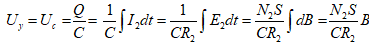 为了测量磁感应强度B,在次级线圈N2上串联一个电阻R2与电容C构成一个回路,同时R2与C又构成一个积分电路。取电容C两端电压Uc至示波器Y轴输入,若适当选择R2和C使R2〉〉1/ωC,则: