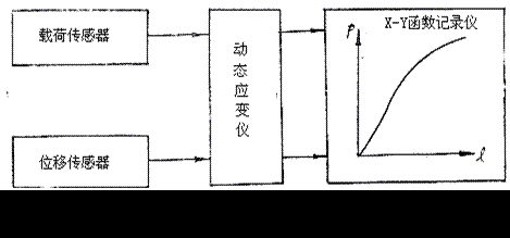 ①载荷传感器和位移传感器;②动态应变议;③X-Y函数记录仪。